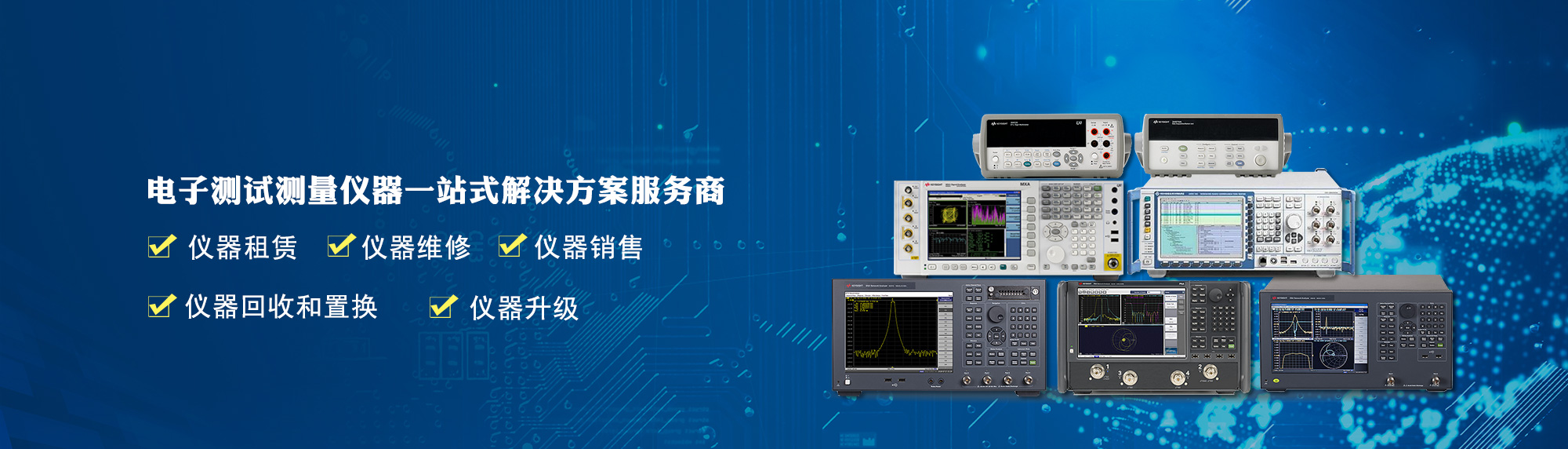 紫信秉承誠信、專業、快捷、靈活和追求卓越的經營理念為客戶提供更優惠的產品,更方便、更迅速的服務。主要經營品牌有KEYSIGHT(是德科技)、AGILENT(安捷倫)、R&S(羅德與施瓦茨)、TEKTRONIX(泰克)、Anritsu(安立)、ADVANTEST(愛德萬)、KEITHLEY(吉時利)、FLUKE(福祿克)、AudioPrecision、LITEPOINT(萊特波特)、NI等等世界著名品牌之網絡分析儀、頻譜分析儀(信號分析儀)、信號發生器、無線綜合測試儀、邏輯分析儀、功率計、數字示波器、三階互調測試儀、光通訊測試儀器、頻率計數器、函數信號發生器、電源、數字萬用表、數據采集儀、音頻分析儀、藍牙測試儀、電子負載、各種儀器配件附件等電子測試測量儀器儀表及配件。長期備有大量儀器儀表庫存,為客戶提供長期和短期租賃服務和銷售服務;有專業的維修人員和熟練的技術為客戶提供維修和升級服務;長期參與儀器拍賣、提供收購、回收和置換業務,為客戶資產變現提供便利服務。